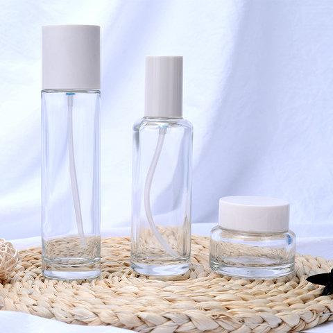 Envase para el cuidado de la piel, botella de crema de vidrio claro con tapa de bomba, 30ml, 50ml, 100ml, 150ml