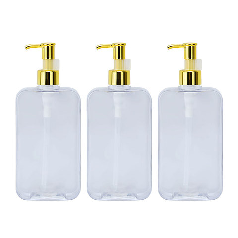 高級ハイエンド300ml 10オンス透明スクエアプラスチック化粧品包装ペット空ローションシャンプープラスチックボトルゴールドポンプ付き