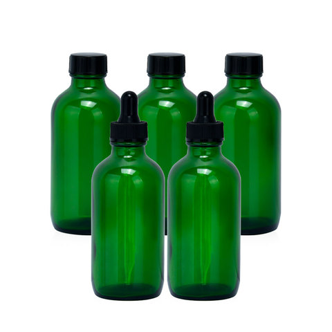 Personalización de Logotipo al por Mayor, Botella de Vidrio Verde con Gotero y Tapa Negra de 120 ml con Punta Recta para Aceite Esencial de 4 oz, Forma Boston