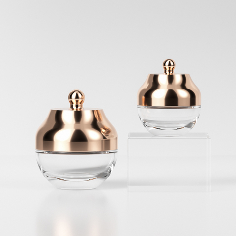 럭셔리 독특한 새로운 디자인 유리 크림 스킨케어 용기 30g 50g 투명 유리 얼굴 눈 보습 크림 병 (금 뚜껑 포함)